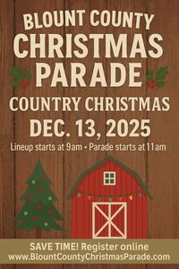 The 2025 Blount County Jaycees Christmas Parade will be held on Saturday, December 13th, 2025, with line-up beginning at 9:00 AM and the parade starting at 11:00 AM in Maryville and Alcoa. The rain date is scheduled for Sunday, December 14th at 3:00 PM. This year’s theme, “A Country Christmas,” celebrates the traditions, rustic charm, and simple joys of the season. From tractors trimmed in tinsel and wagons glowing with lights to hay bales, flannel, and festive music, the parade honors the hometown pride and neighborly spirit that make East Tennessee shine during the holidays.